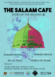 The Salaam Cafe: Story of the beloved takes you on a journey through the life of the Prophet Muhammed (PBUH) from his birth to the hijrah through a fusion of traditional Arabic Qassaid, Urdu naats and English devotional songs interwoven with storytelling, poetry and rap.